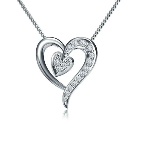 Lilu Jewels Pure 925 Sterling Silver, Cubic Zirconia Stone Love Heart Pendant Necklace with 18 inch Chain for Women and Girls