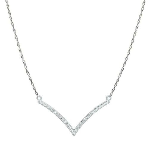 Lilu Jewels Pure 925 Sterling silver, Cubic Zirconia Stone V Pendant Necklace with 18 inch Chain for Women and Girls