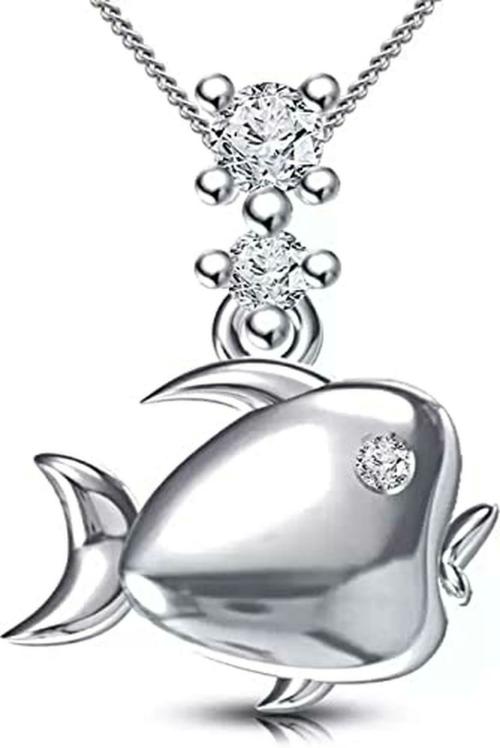 Lilu Jewels Pure 925 Sterling Silver, Cubic Zirconia Tiny Fish Shape Pendant Necklace with 18 inch Chain for Women and Girls