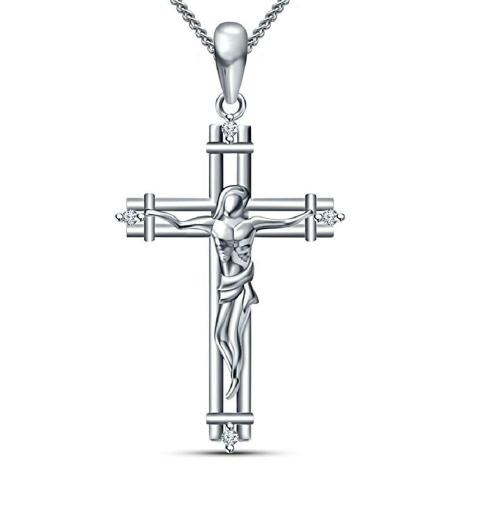 Lilu Jewels White Platinum Plated 925 Sterling Silver Cubic Zirconia Jesus Cross Pendant Necklace with 18 inch Chain for Women and Men