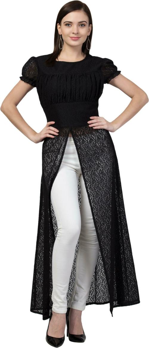 Lilyn Women Black Self Design Lace Maxi Dress (L)