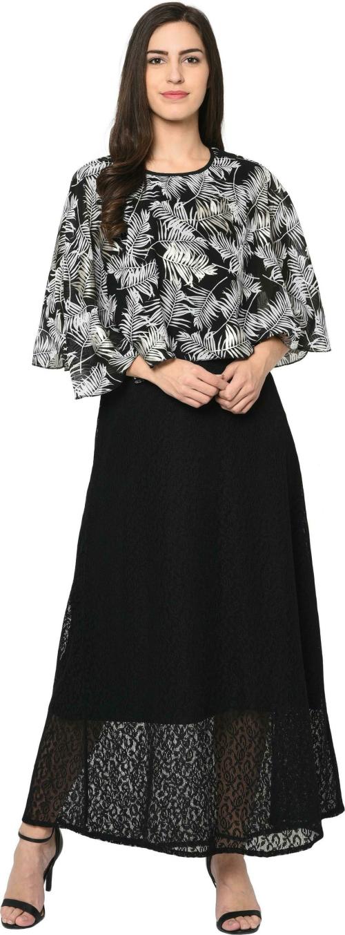 Lilyn Women Black Solid Cotton Blend Layered Dress (XL)