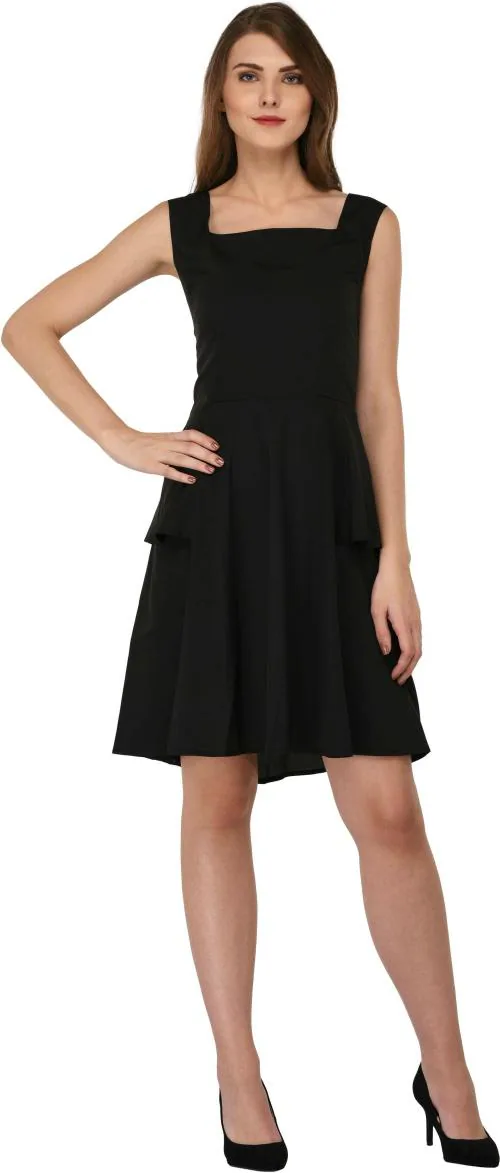 Lilyn Women Black Solid Crepe A-Line Dress (XL)