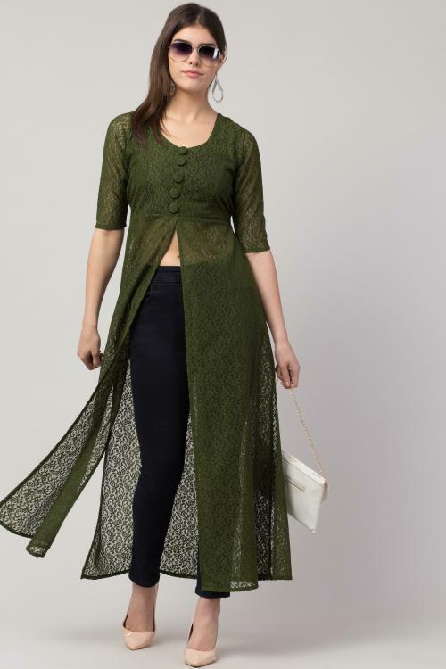 Lilyn Women Dark Green Lace A-Line Dress (L)