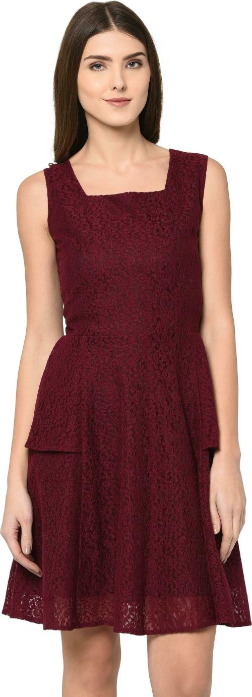 Lilyn Women Maroon Printed Cotton Blend A-Line Dress (M)