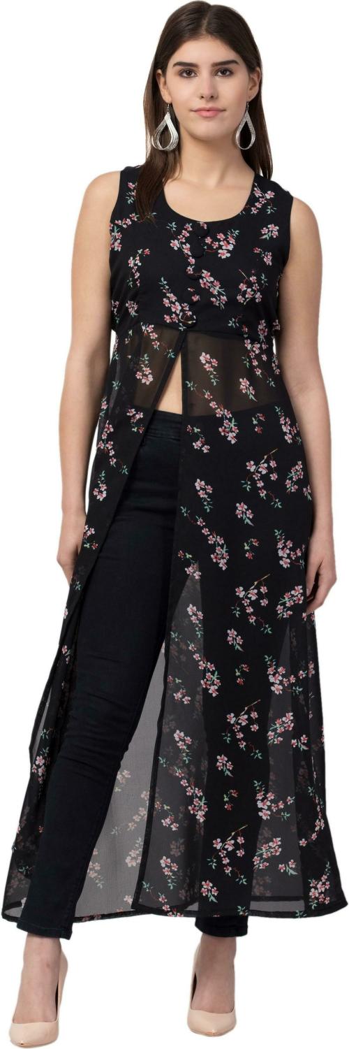 Lilyn Women Multicolor Floral Print Georgette A-Line Dress (L)
