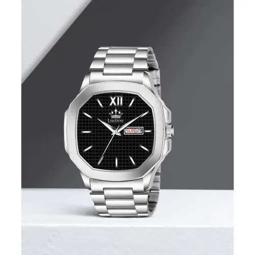 LIMESTONE Analog Black Dial Silver Strap Watch For Men (LS3027)