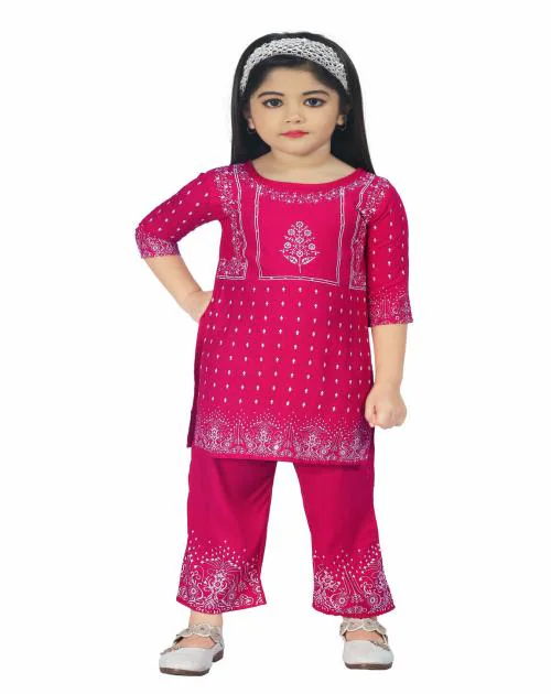 LINK KWALITY Girls Festive & Party Kurta and Pyjama Set (pink Pack of 1)