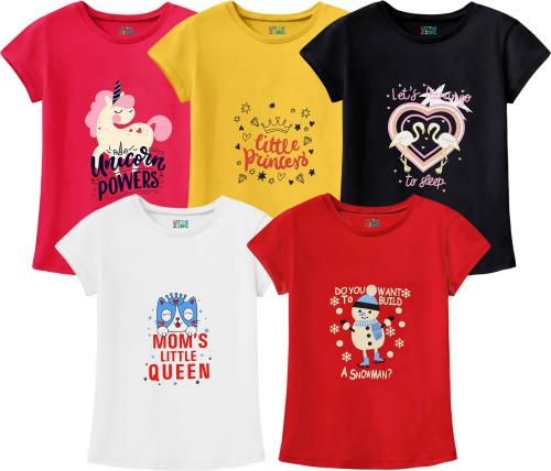 Little Zing Girls Multicolor Pure Cotton Printed Pack Of 5 T Shirt | Girls tshirt | Kids Tshirt | Kids Wear | Tshirt for Girls | Baby Clothes | T shirt for Girls | Girl T-shirt