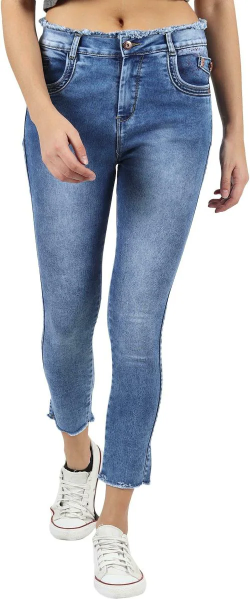 LIVE OK Women Blue Solid Cotton Polyester Lycra Blend Skinny Jeans