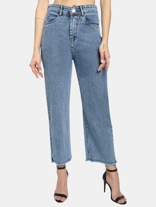 LIVE OK Women Light Blue Self Design Denim Boyfri Jeans