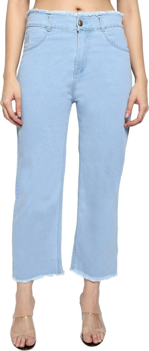 LIVE OK Women Light Blue Self Design Denim Boyfri Jeans