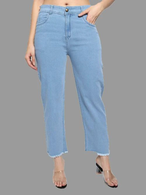 LIVE OK Women Light Blue Self Design Denim Boyfri Jeans