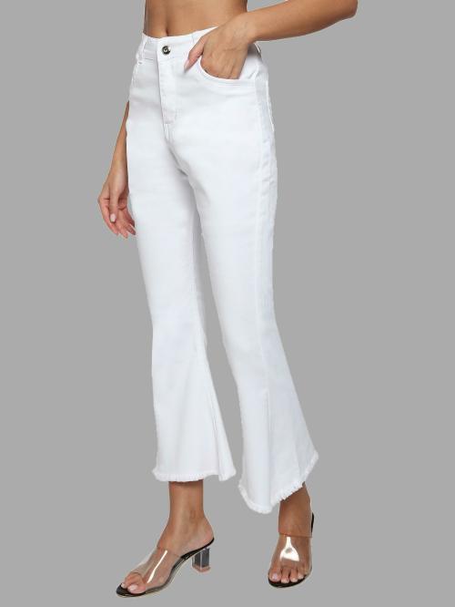 LIVE OK Women White Self Design Denim Bootcut Jeans