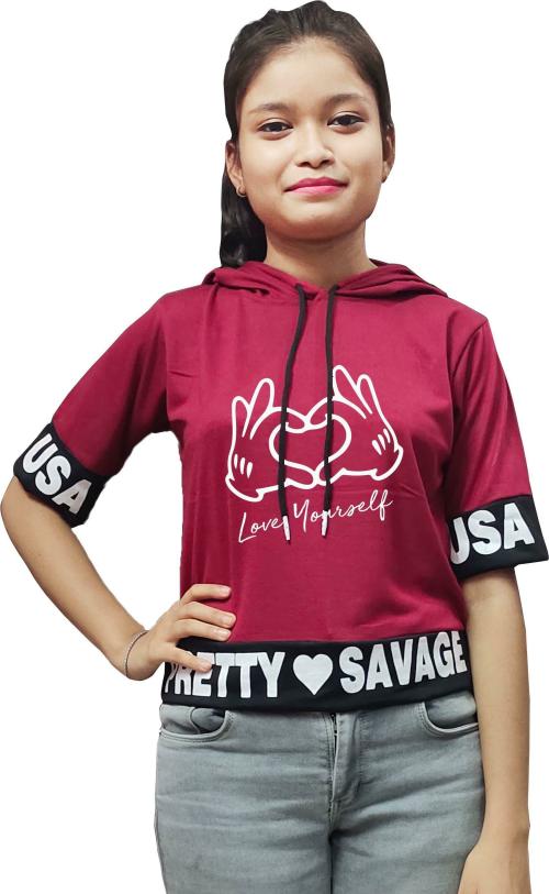 Locavestir Girls Multicolor Printed Cotton Blend Ruffeld Top (14-15Y)