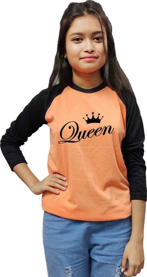 Locavestir Girls Peach Printed Cotton Blend T shirt (15-16 Y)