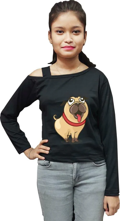 LocavestirGirls Black Graphic Cotton Blend Off Shouldered Top (12-13Y)