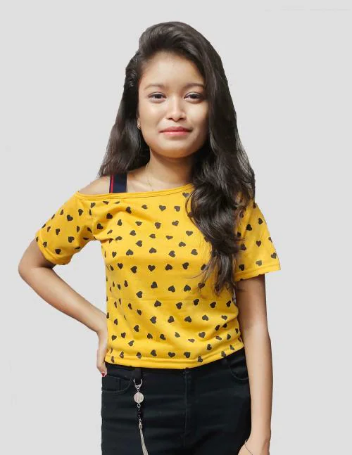 LocavestirGirls Yellow Printed Pure Cotton Crop Top (15-16Y)
