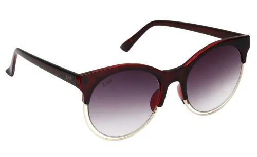 LOF Round Metal Design Sunglasses For Women Wine Color Frame UV Protection Latest And Stylish (LS-D15139-C5I54I Brown Color Lens)