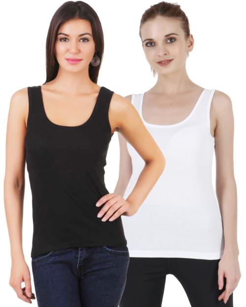 LooksOMG's Cotton Camisole / Snaghetti for girls in Black & White pack of 2.