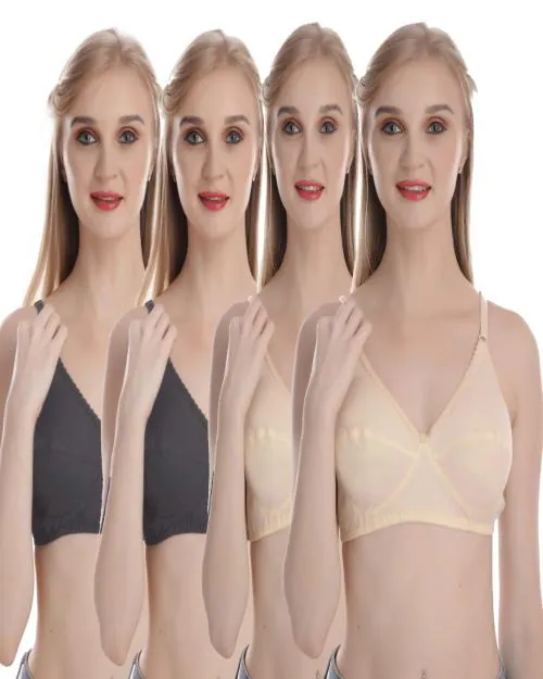 LooksOMG's Cotton comfortable Regular Bra in Skin & Black color pack of 4