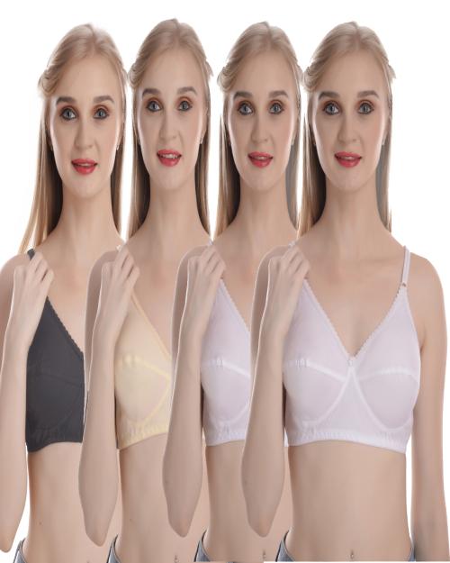 LooksOMG's Cotton comfortable Regular Bra in White2, Skin & Black color pack of 4