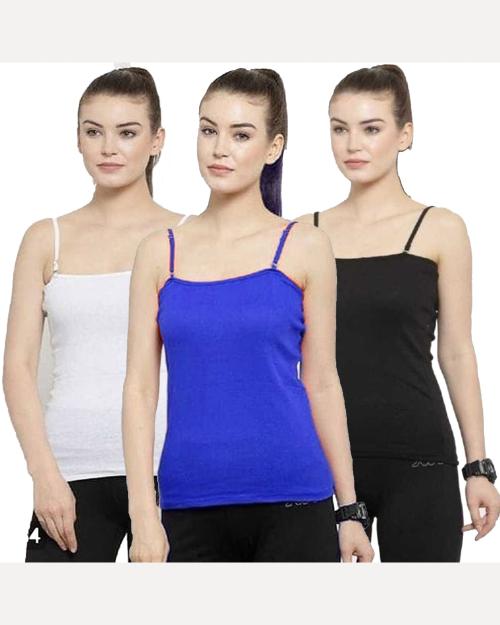 LooksOMG's Cotton Slips / Snaghetti for girls in White, Blue & Black pack of 3.