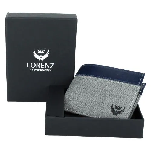 Lorenz Bi-Fold Casual Grey Wallet for Men (Gray,Blue) | WL-15