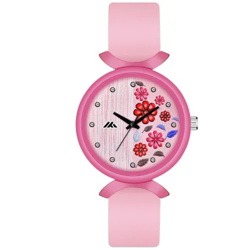 LORETTA New Stylish Designer Pink Color Slim Silicone Belt Analog Watch For Girls & Women