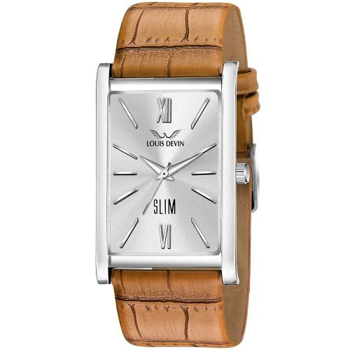 LOUIS DEVIN Analog Silver Dial Brown Tan Synthetic Leather Starp Wrist Watches for Men (LD-WT052-SLV-BRW)