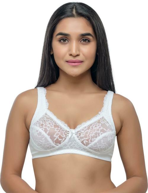 Lovable Women's Cotton Semi Silk Seamless With Embroidered Non-Padded Full Coverage Everyday Use Pushup Bra (White_Size-44C)