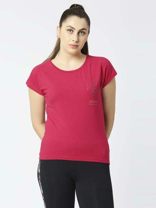 Lovable Women Solid Cotton Spandex Fuchsia T-Shirt_XXL