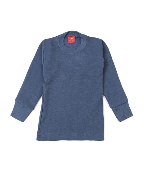 LUX COTT'S WOOL Kids Blue Solid Cotton Blend Thermal top