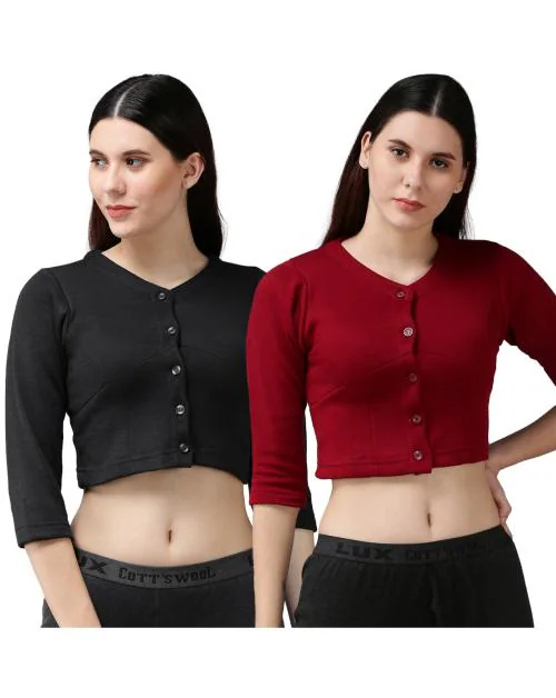 LUX COTT'S WOOL Women's Black & Maroon Solid Cotton Blend Pack Of 2 Thermal Tops