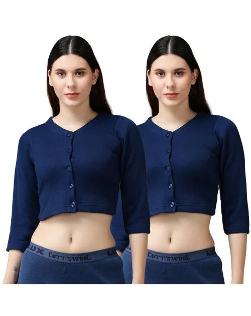 LUX COTT'S WOOL Women's Blue Solid Cotton Blend Pack Of 2 Thermal Tops
