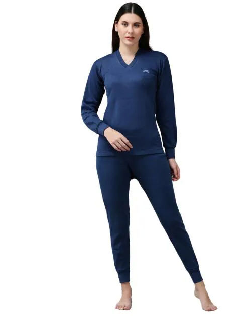LUX COTT'S WOOL Women's Blue Solid Cotton Blend Thermal Sets