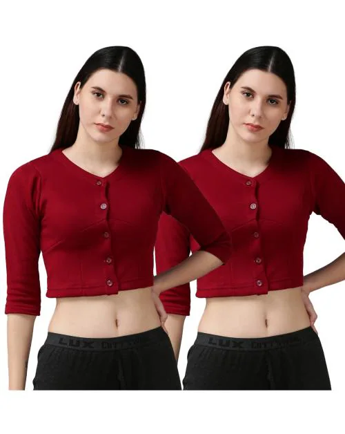 LUX COTT'S WOOL Women's Maroon Solid Cotton Blend Pack Of 2 Thermal Tops