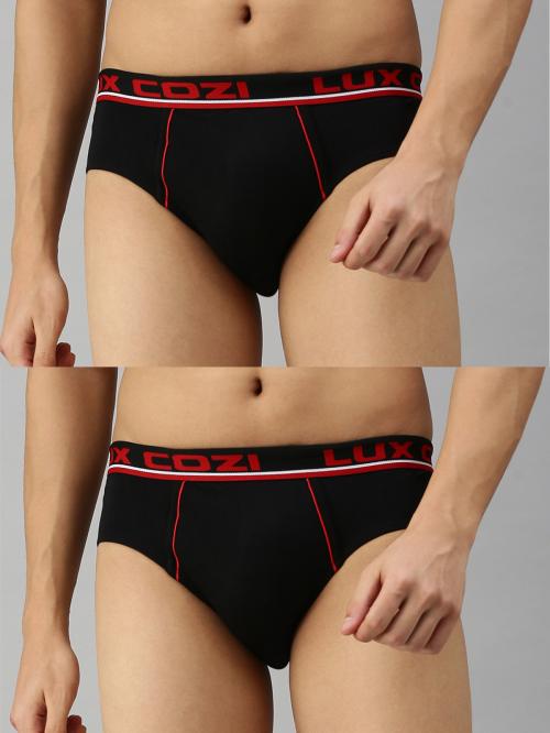 Lux Cozi Bigshot Men's Black Solid Cotton Pack of 2 Briefs
