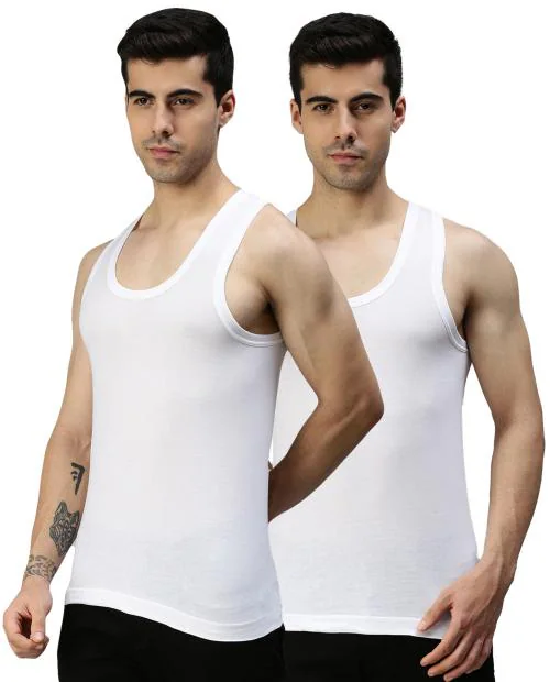 LUX Cozi White Mens Pure Cotton Vest Pack of 2