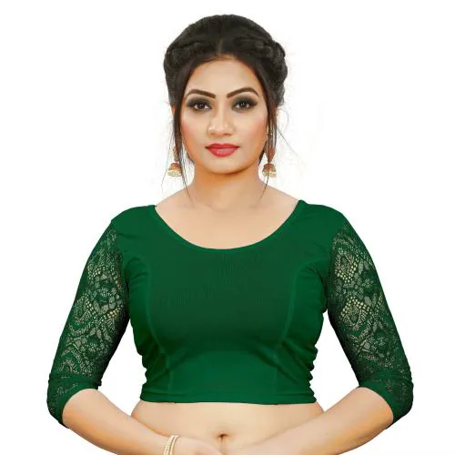 LYNETH Women Bottle Green Self Design Cotton Lycra Blend Blouse, Size 32