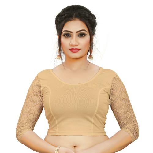 LYNETH Women Chikkoo Beige Self Design Cotton Lycra Blend Blouse, Size 32
