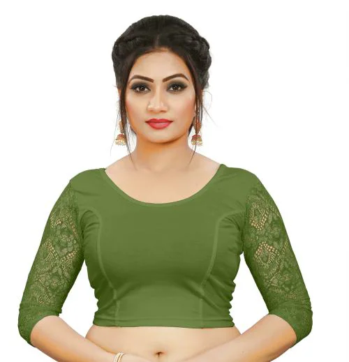 LYNETH Women Mehendi Green Self Design Cotton Lycra Blend Blouse, Size 32