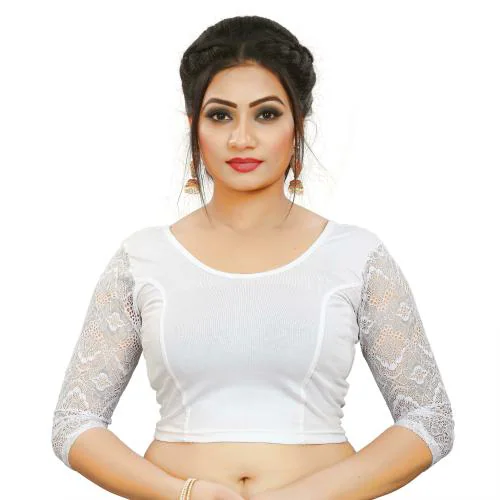 LYNETH Women White Self Design Cotton Lycra Blend Blouse, Size 38