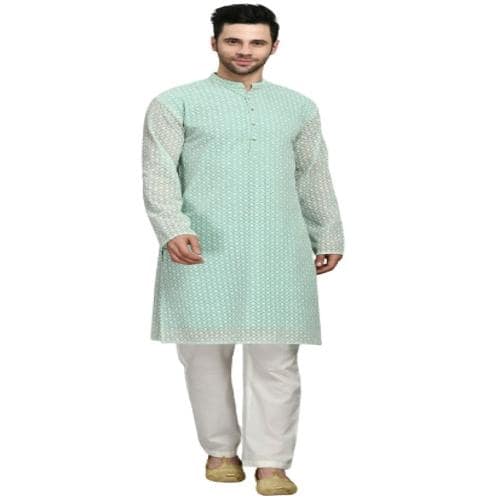 MAFE Men's Georgette Chikankari Kurta With Pant For Festival Wear (Sky Blue) - Size: XXX-Large