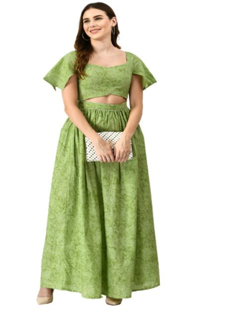 MAFE Women's Cotton Tie Dye Long Dress For Elegant Traditional Wear (Green) - Medium