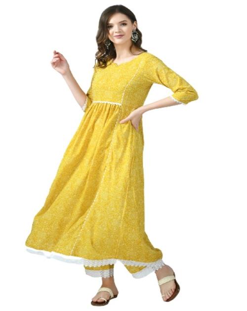 MAFE Women's Rayon Kurta Pant Pair Bandini Printed For Festival Wear (Mustard) - Large