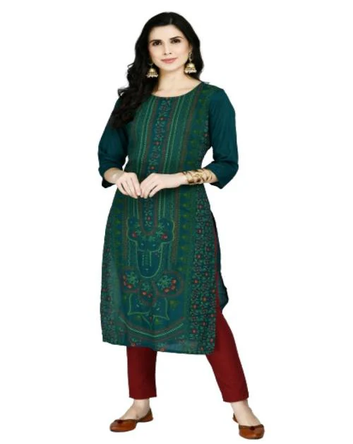 MAFE Women's Rayon Kurti Pant Set For Elegant Traditional Wear (Green & Maroon) - Medium