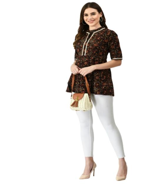 MAFE Women's Rayon Printed Top For Western Fancy Wear (Black) - Medium