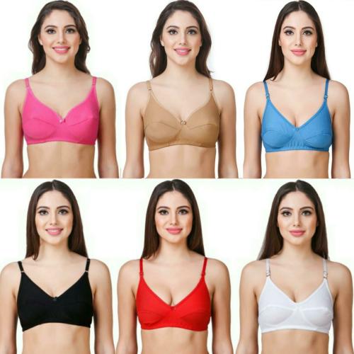 Piylu Women's Multicolor Cotton Blend Pack of 6 Non Padded Bra (34)