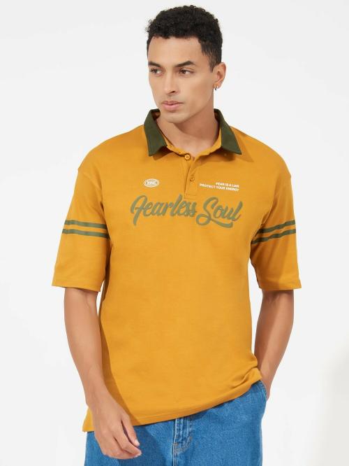 Maniac Tshirt/Mens Tshirt/tshirt for mens/tshirt/Mens Printed Polo Neck Half Sleeve Yellow and Green Oversized Fit Cotton T-Shirt